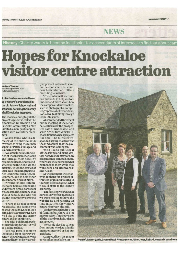 A plan has been unveiled to set up a visitors’ centre based in the old Patrick School Hall and a website detailing the history of all Knockaloe internees.